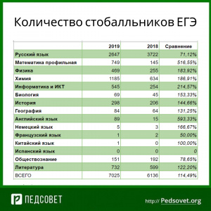 10.02.2020Как сообщила Педсовету пресс-служба Рособрнадзора, число учеников, получивших сто баллов на прошедшем в этом году Едином государственном экзамене, по сравнению с прошлым, выросло.