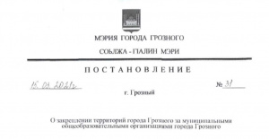 Постановление Мэрии г.Грозного от 15.03.2021г. №31 "О закреплении территорий города Грозного за муниципальными общеобразовательными организациями города Грозного"