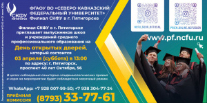 ПРИГЛАШЕНИЕ НА ДЕНЬ ОТКРЫТЫХ ДВЕРЕЙ СКФУ В Г.ПЯТИГОРСКЕ 03.04.2021 ГОДА